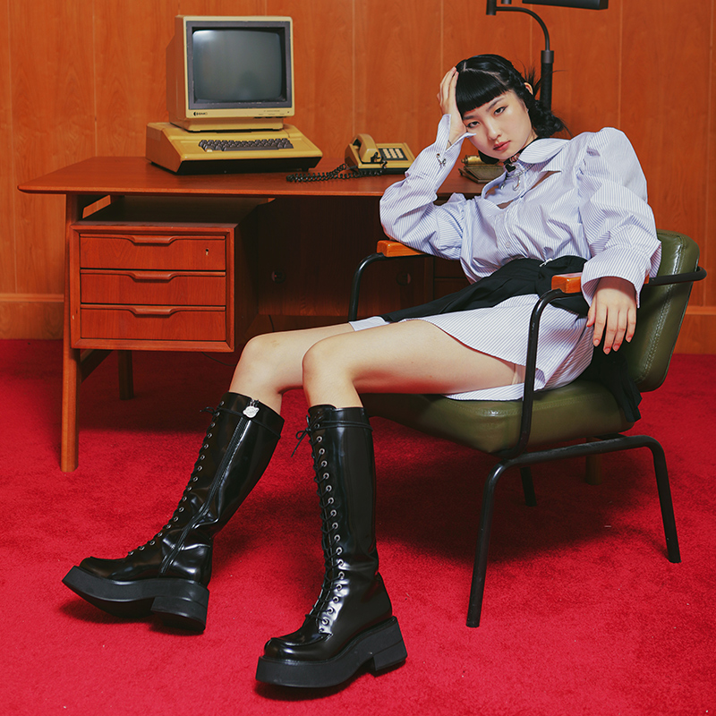 Littlegood British Winter Martin Boots Thick Sound Autumn and Winter New Knee High Boots Locomotive Boots
