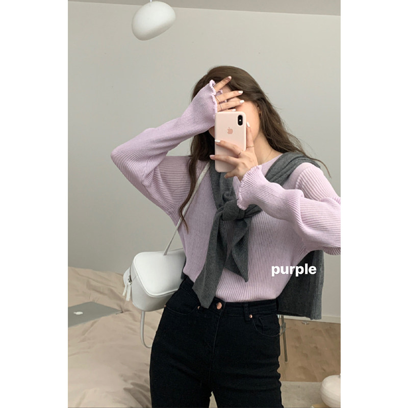 HYYEGIRL Black Gothic Korean version of gentle wind outside wearing thin-style knitted sweatshirt female display slim temperament long sleeve blouse autumn