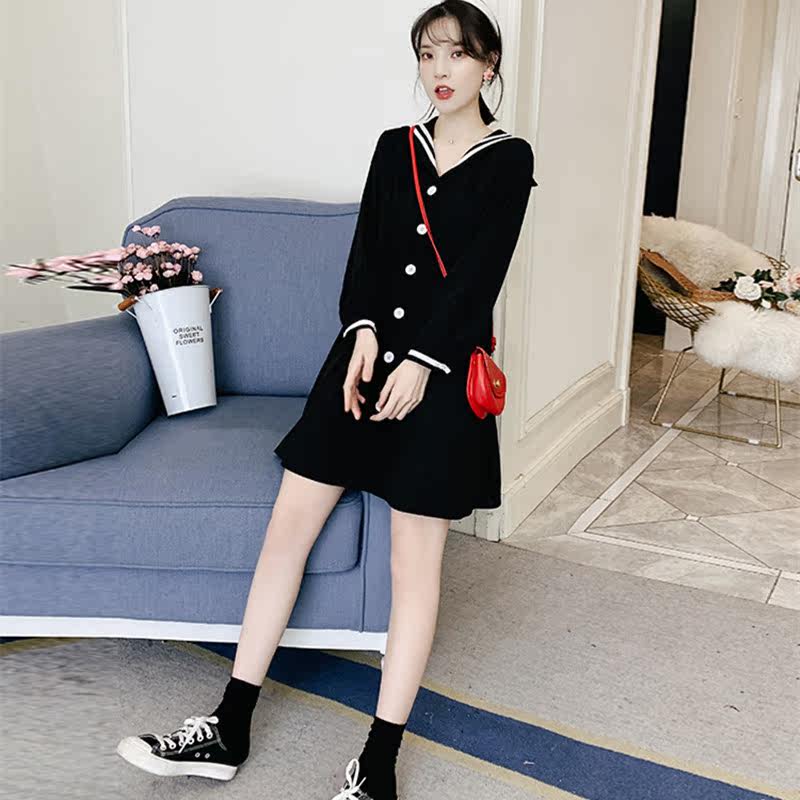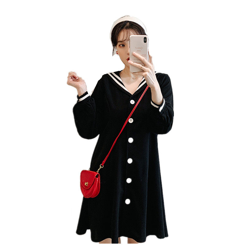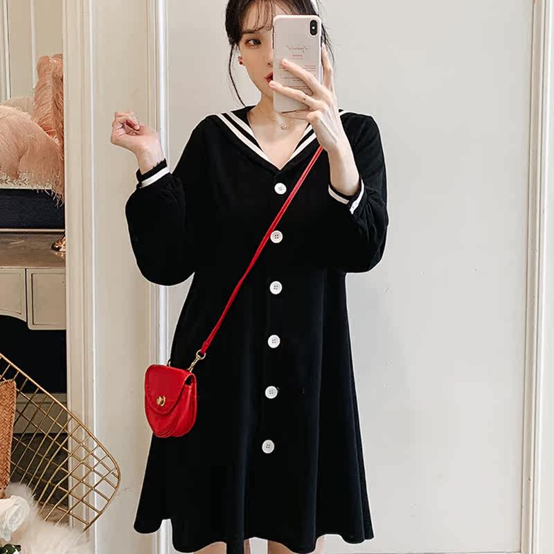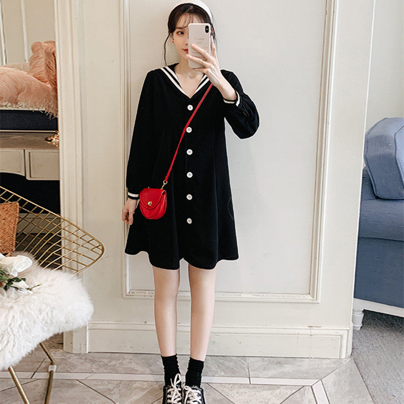 Maternity early autumn fashion set Korean version of knitted dress early autumn style mid-length version of the large size maternity outer top
