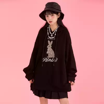 HTCU tide brand BAO WEN rabbit printed thick cotton T couple casual loose ins hip-hop men and women hooded hoodies plus velvet