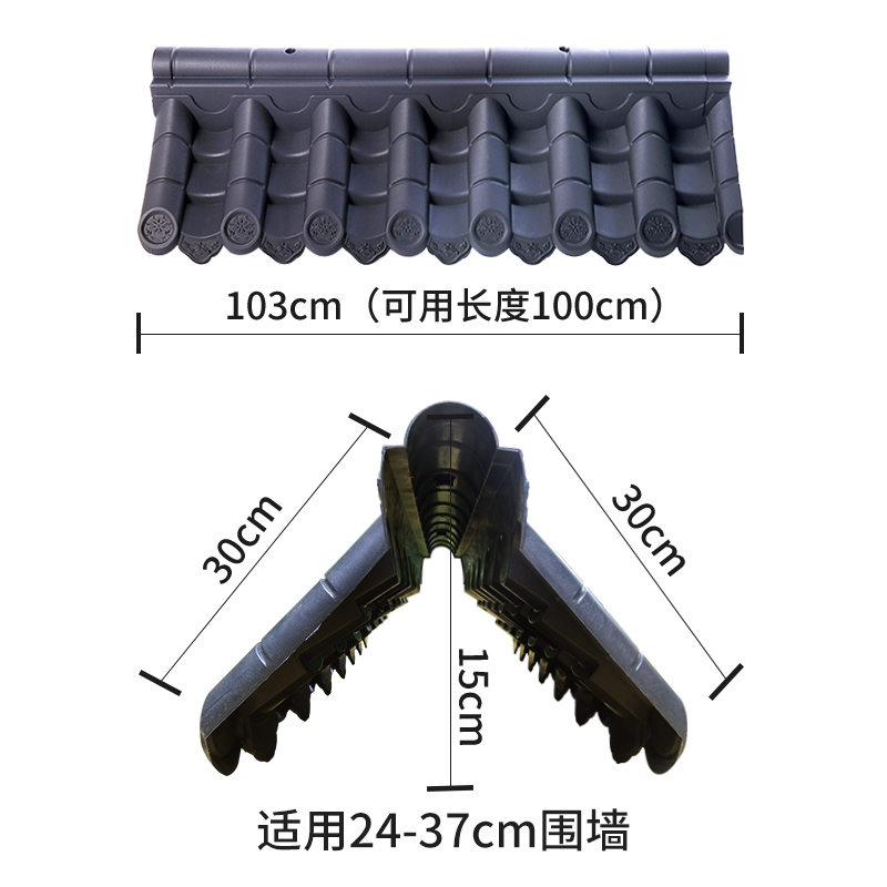 Thickened double-sided wall pressure tile wall head tile Antique plastic resin tile Roof courtyard wall item cap tile horse head wall