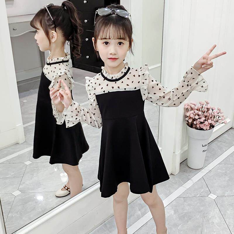 Girl 5-8-9 years old wave dot color A dress 2020 new spring and autumn little girl flared sleeve fairy dress