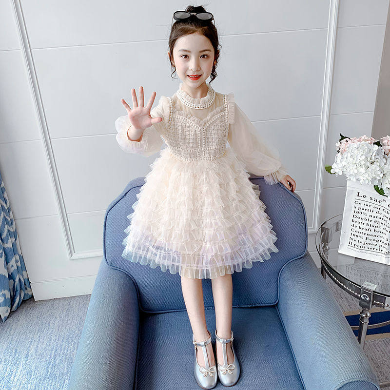 Girls princess dress spring dress 2020 new western style girl long-sleeved gauze skirt cake skirt spring and autumn children's dress