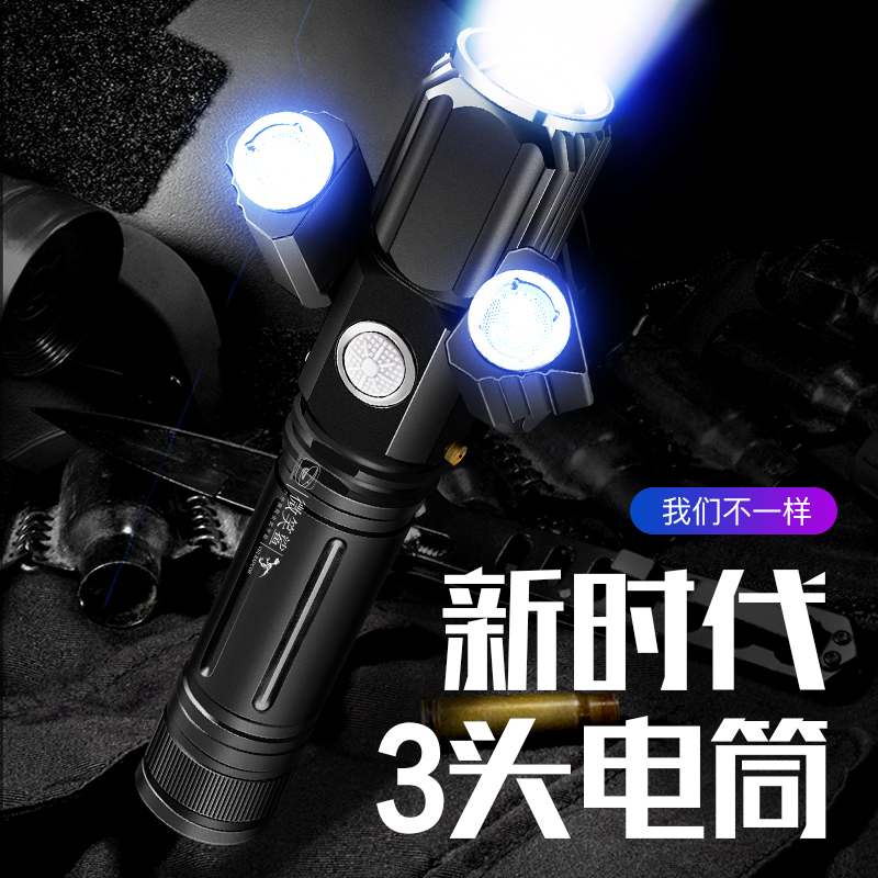 3 lamp holder bicycle light front light riding light night riding light mountain bike bicycle light LED light charging strong light flashlight