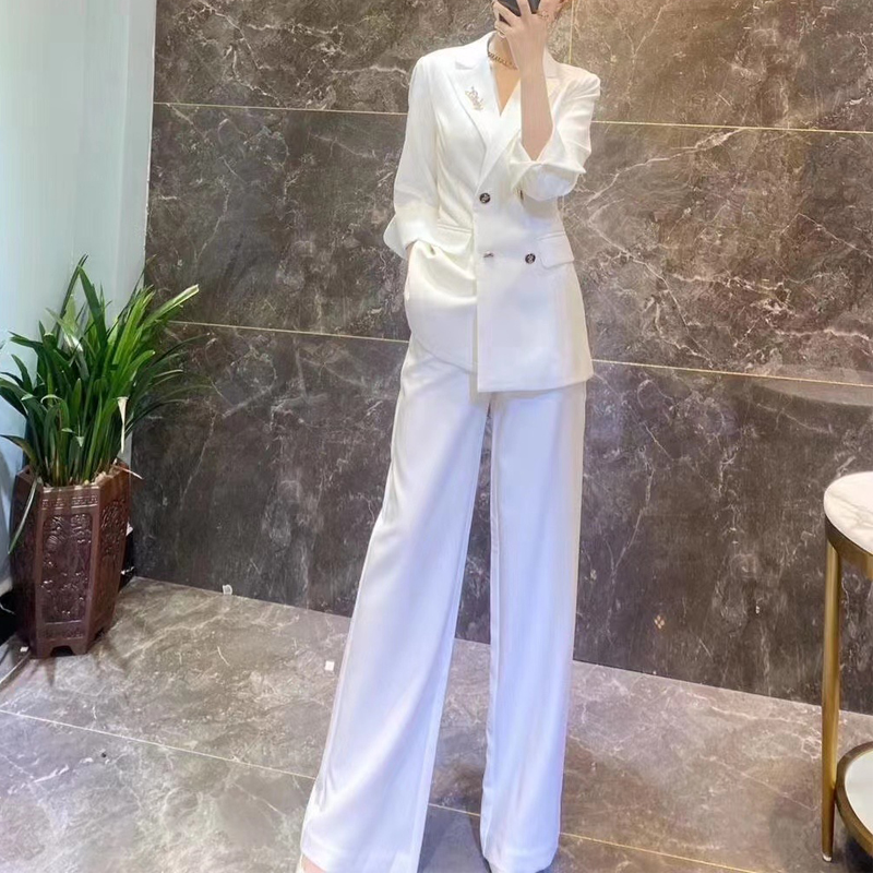White suit suit female 2022 spring and autumn new Korean version fashion professional temperament fried street royal sister wide-leg pants suit