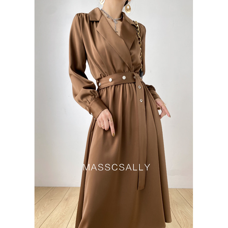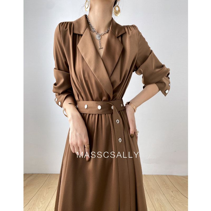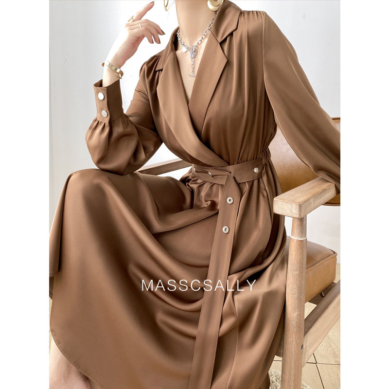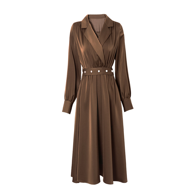 Spring new design sense suit dress women's long-sleeved French high-end temperament high-end acetate satin skirt