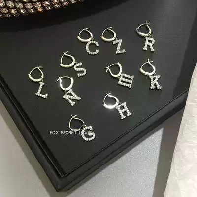 European and American Tide people simple Super Flash inlaid with diamond zircon inlay 26 English letter pendant earrings couple earrings couple earrings
