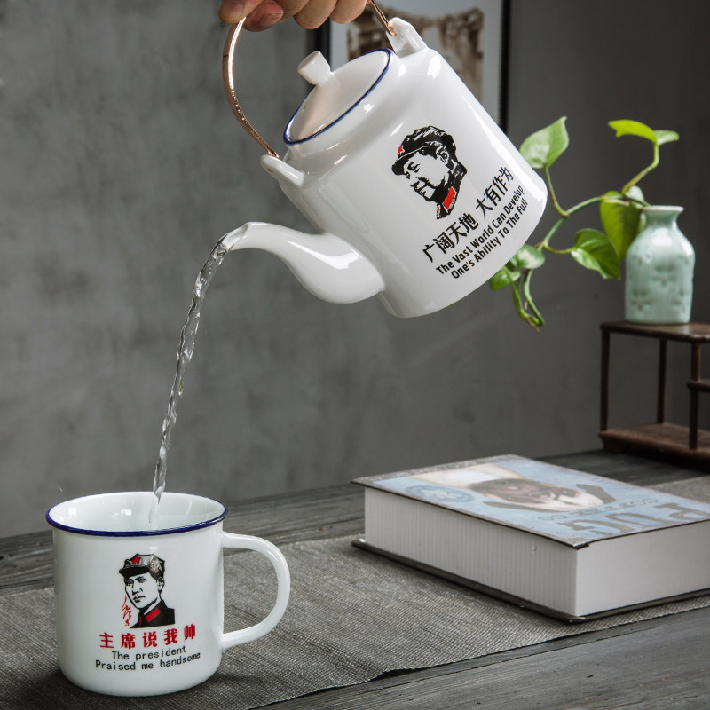 Nostalgic Quotations Porcelain Teapot Ceramics Large Capacity Hotel Cool Kettle Big hot water kettle Tiliang Bubble Home Teapot-Taobao