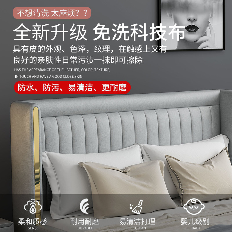 Modern light extravagant tech cloth art bed 1 8 m master bedroom with double bed 1 5 m size family type tennis red storage cloth art bed