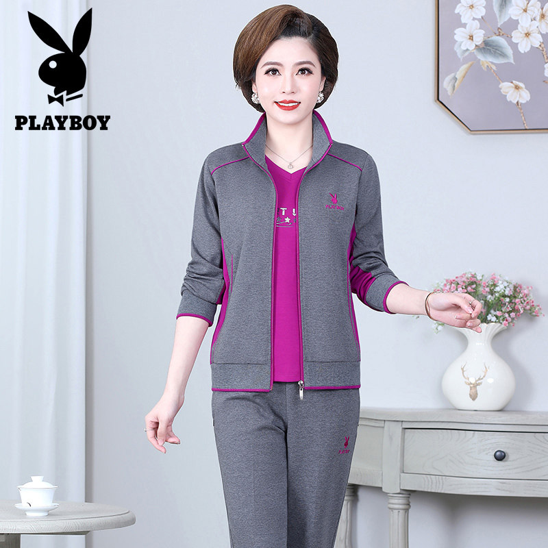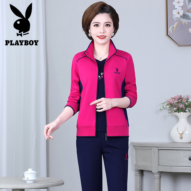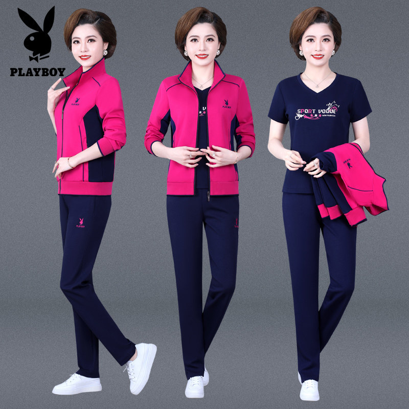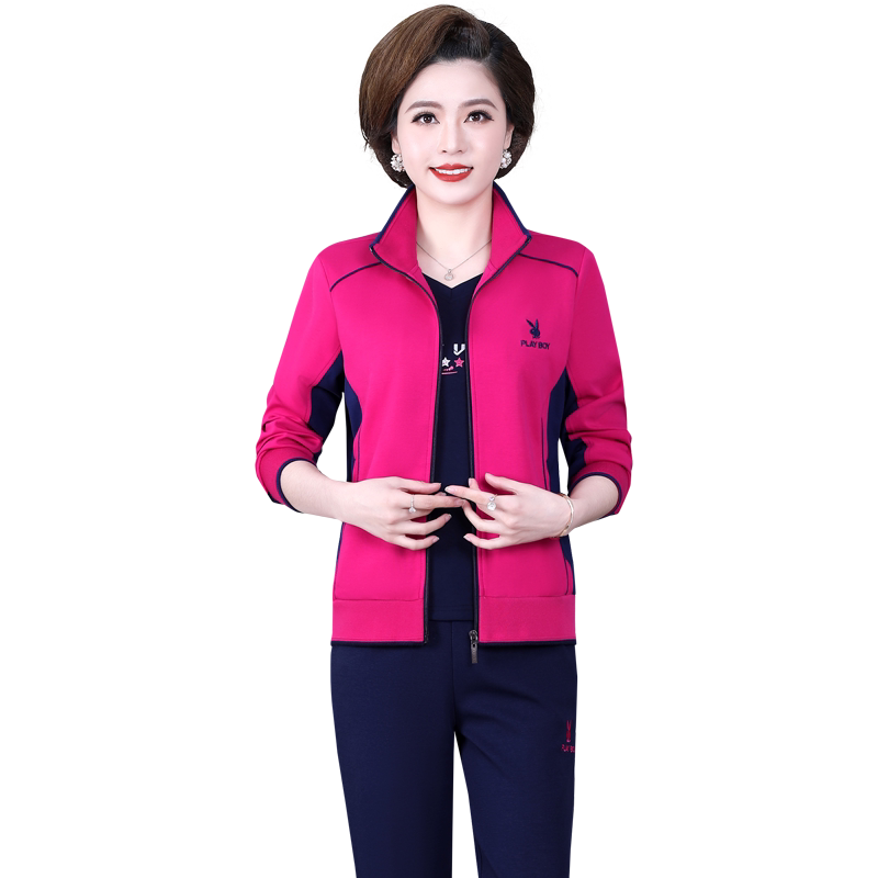 Flowers Playboy Sports Suit Women Fall New Middle Aged Mom Clothing Cotton Loose Casual Sports Wear 2 pieces