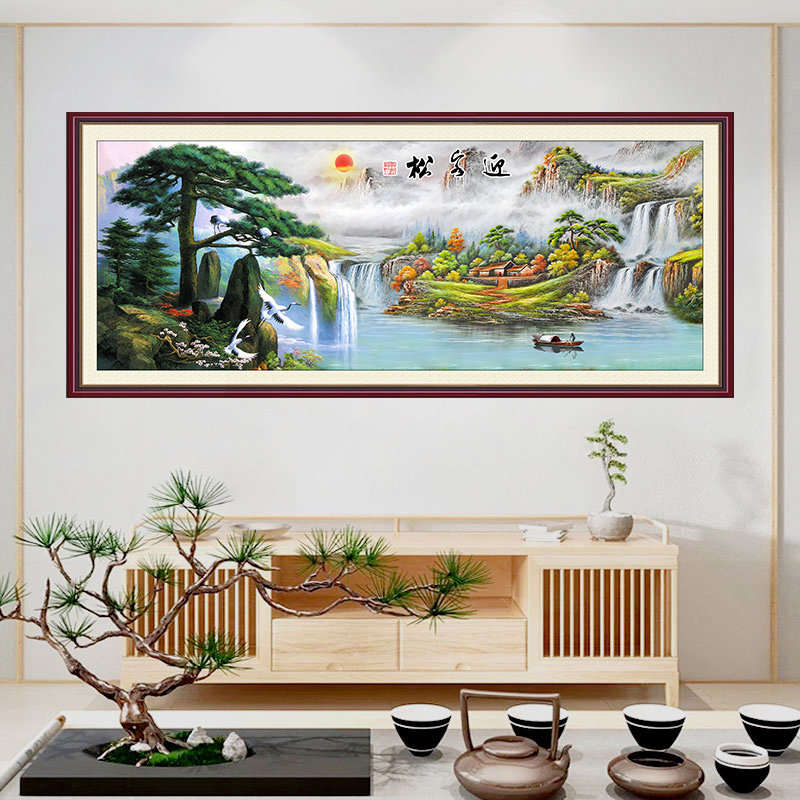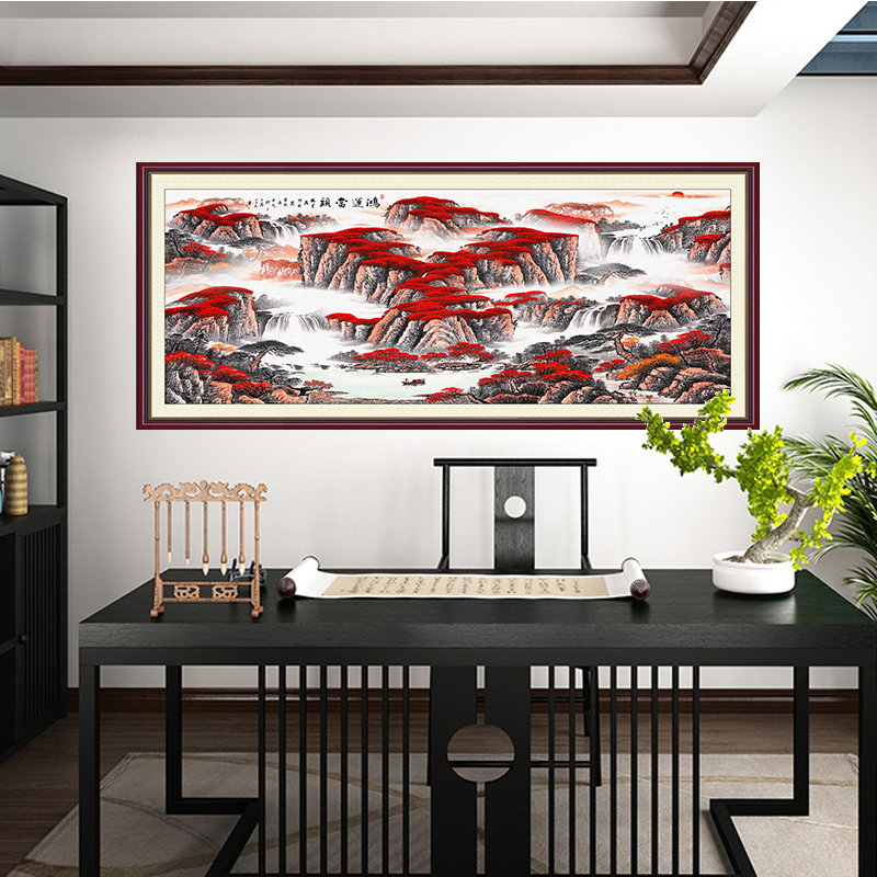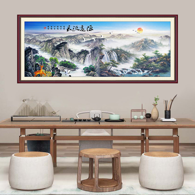 Wall pasted Chinese painting study office Chinese landscape painting living room decoration painting wall pasted self-adhesive paper Jiangshan picturesque