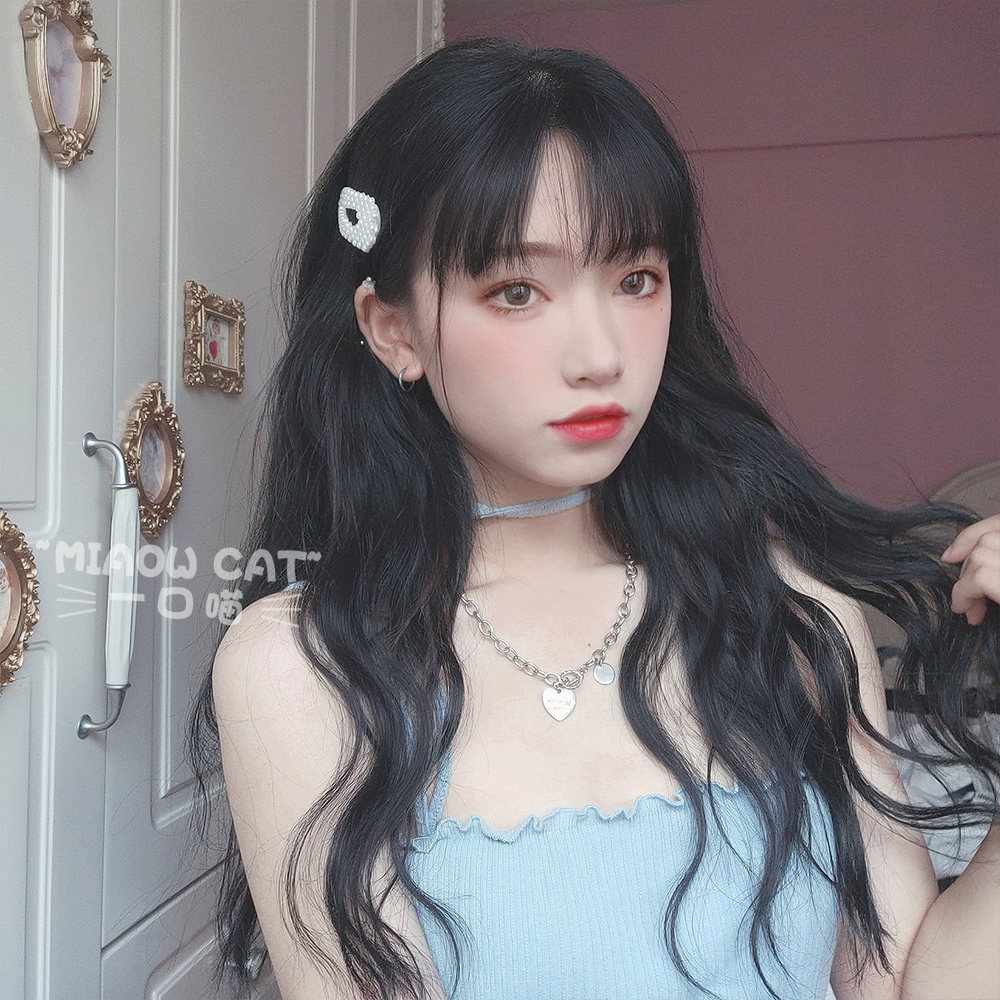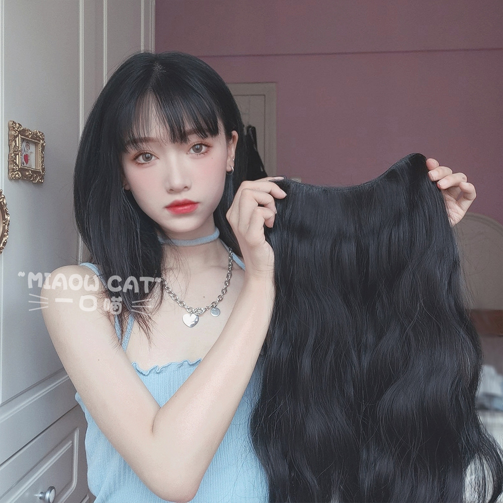 Wig female long hair natural fluffy long curly hair U-shaped half headgear invisible seamless net red fashion water ripple hair extension