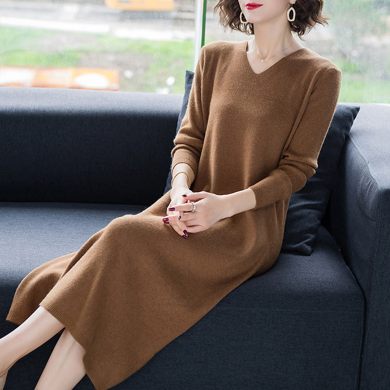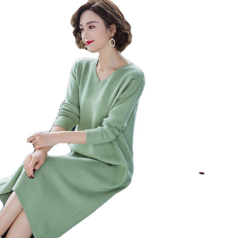 Dituntown V - collar lady sweater middle - long autumn dress knitted in 2021 new Korean edition dress knitted blouse