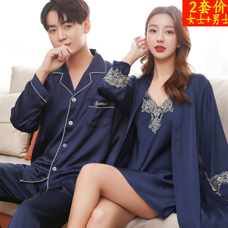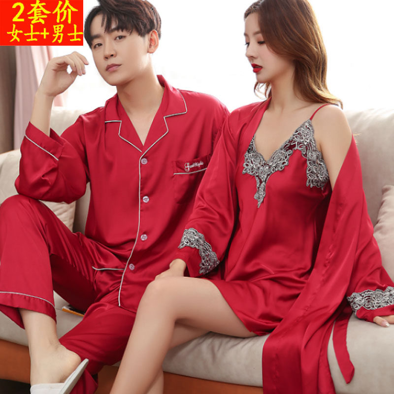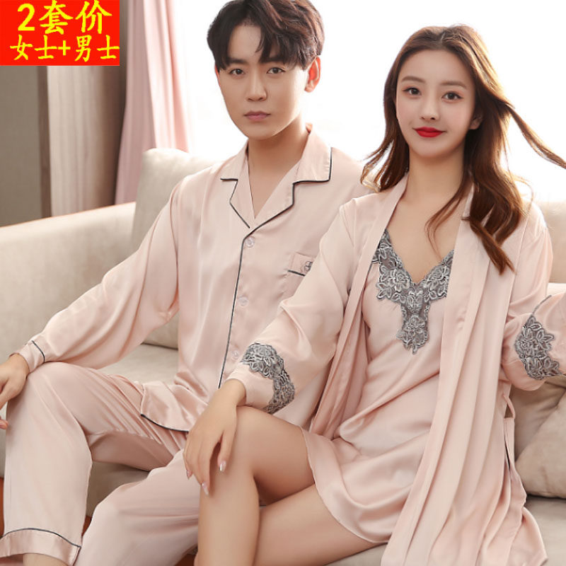 Couple sleepwear autumn Korean version Sexy Sexy Seductive Harness Pyjamas Sleeping Dress Men And Women Ice Silk Suit 2020 New Wave