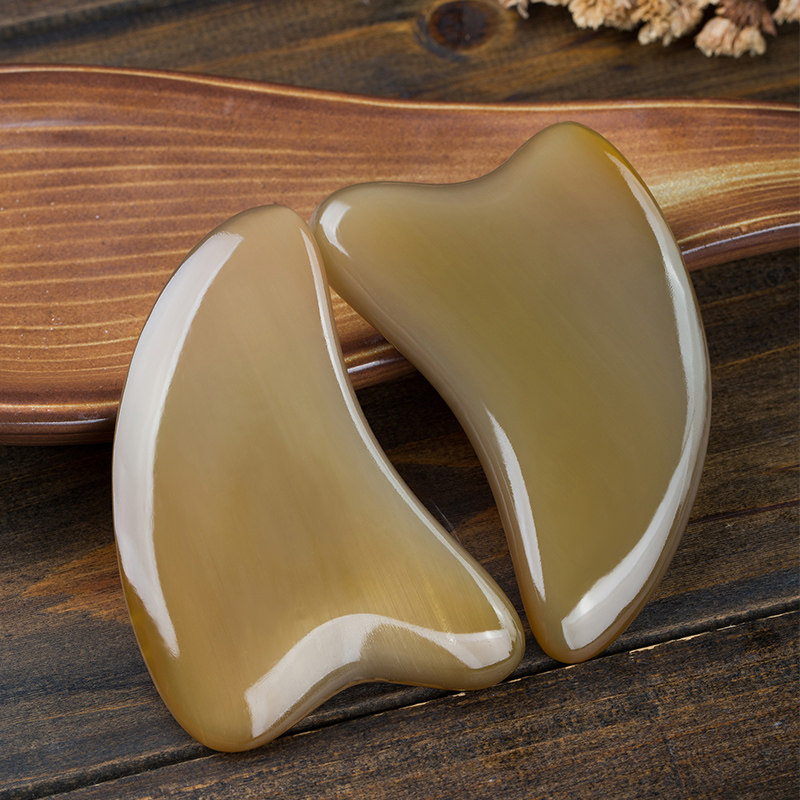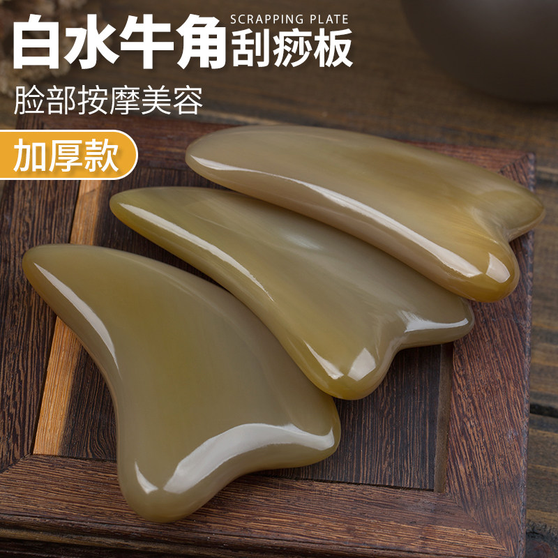 Natural white buffalo horn scraping plate facial eye cosmetic massage thicken full body universal dial fascia