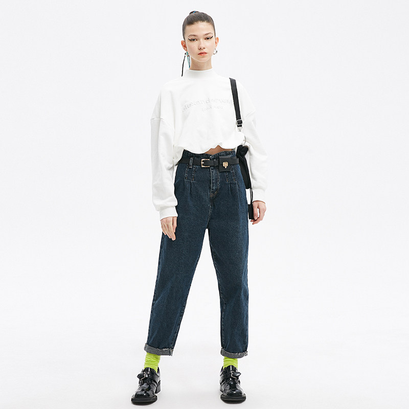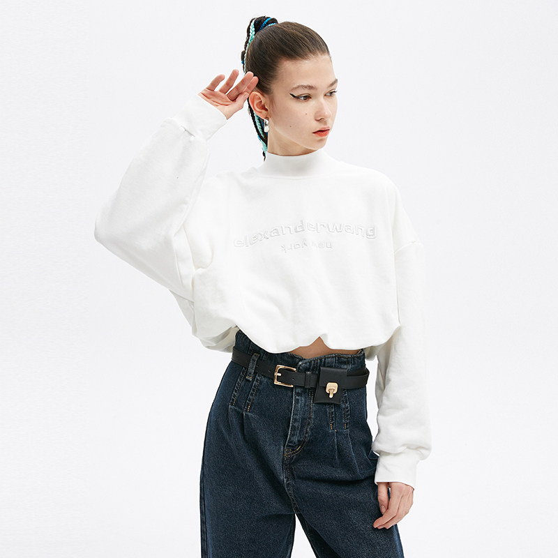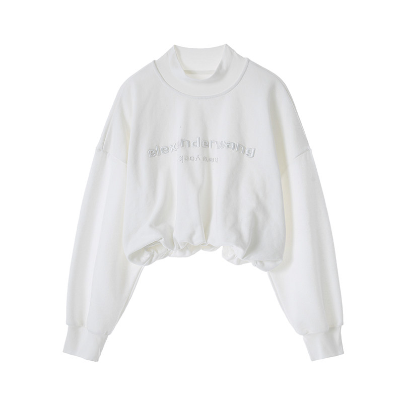 Jamor autumn new minimalist sweet and white letters printed thick cotton T female pure cotton casual semi-high collar blouses