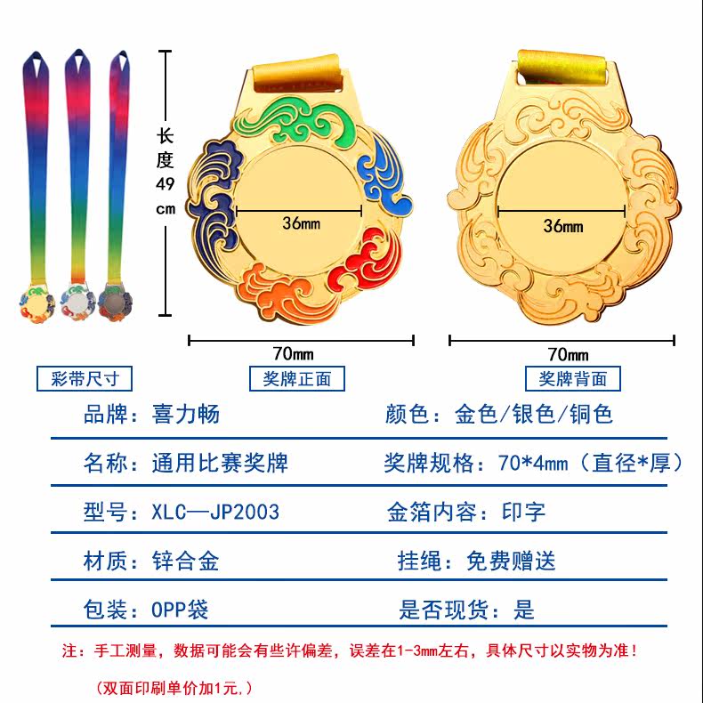 Medal customized to be a student football listed gold and silver bronze medal for Children's Games Marathon Honor Competition Champion