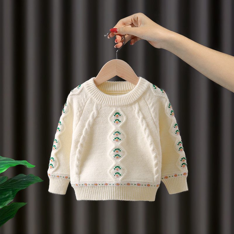 Girl's sweater jacket head winter 2023 new ocean gas children thickening needle weaselweaters baby clothes winter child load tide-Taobao