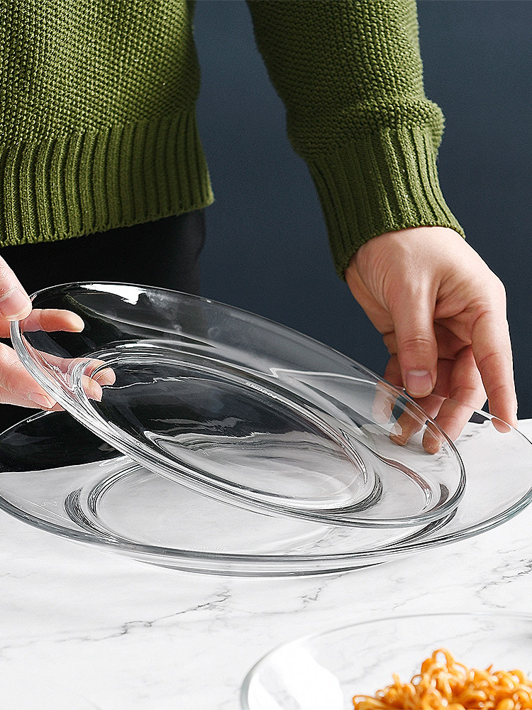 Heat Resistant High Temperature Tempered Glass Plate Transparent Home Fruit Tray Creative Dress Pan Zippy Day Style Round