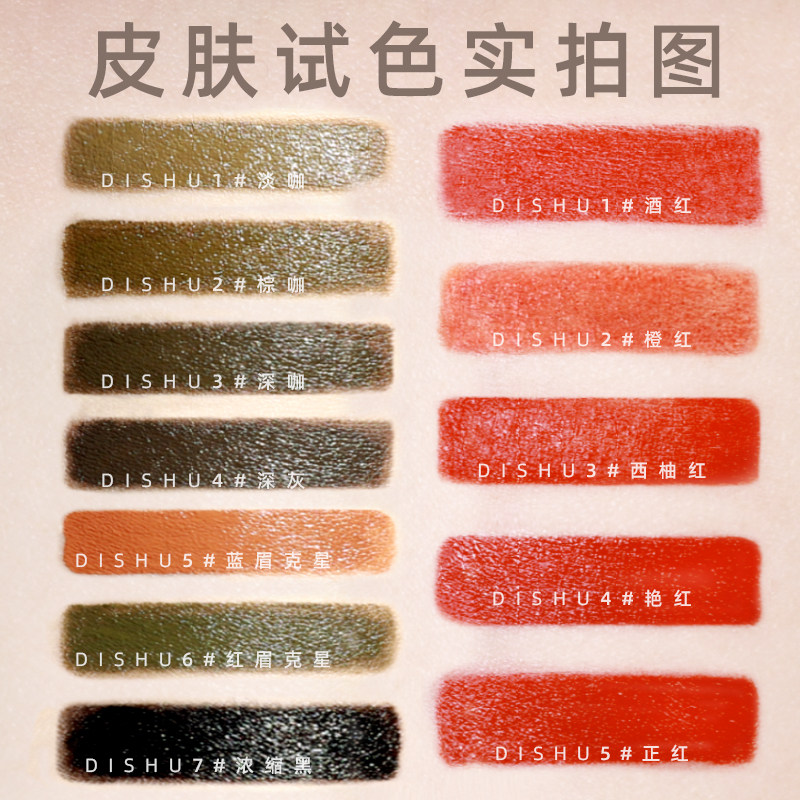 Light coffee - eyebrow brown coffee - eyebrow dark coffee - eyebrow dark gray - eyebrow concentrated black - eyeliner red - lip orange red - lip wine red - lip bright red - lip grapefruit red - lip blue Eyebrow Buster - Change to Blue Eyebrow
