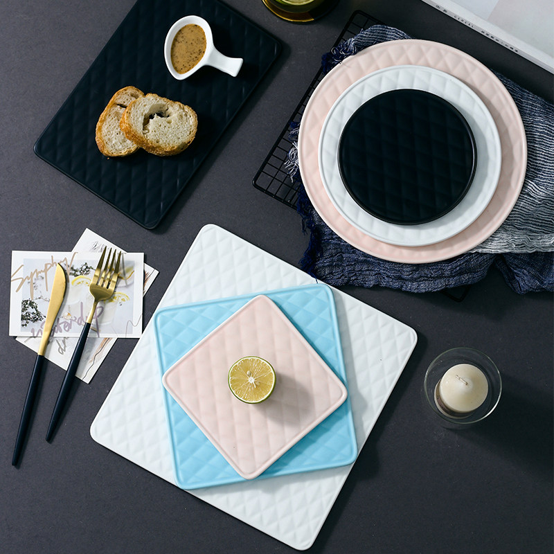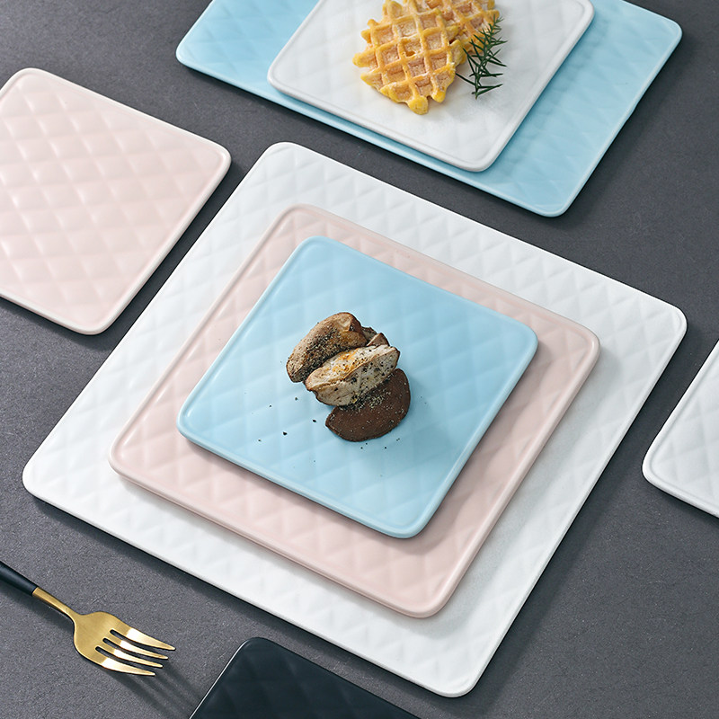 Dumb white 6-inch gold diamond square plate Matt black 6-inch gold diamond square plate Matte blue 6-inch gold diamond square plate Matte powder 6-inch gold diamond square plate