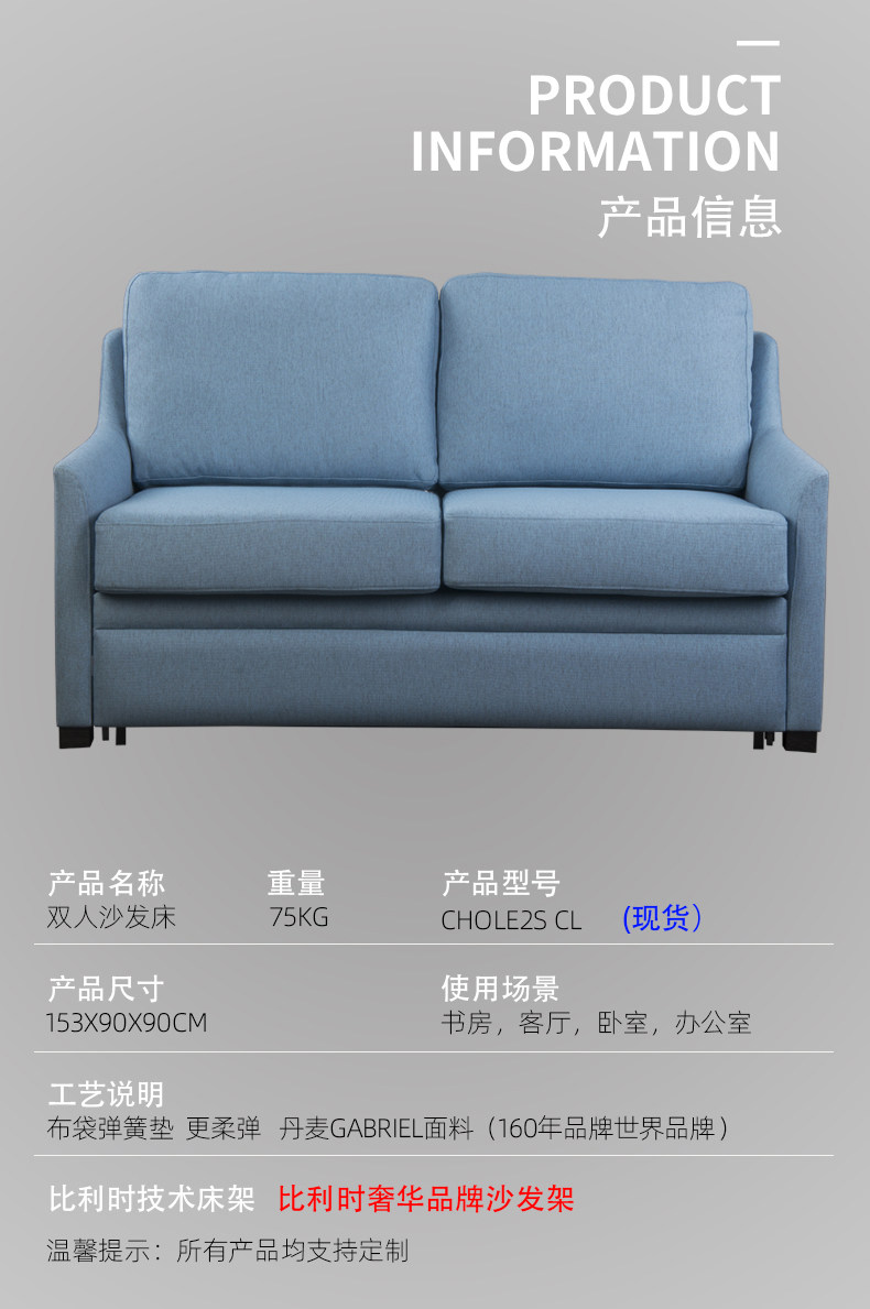 Gabriel Fabric Dual-use Sofa Bed Light Luxury Technology Fabric Sofa Directly Line Nordic Living Room Modern Simple