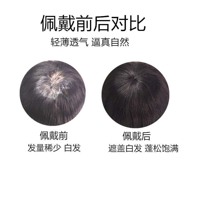 Wig piece of head reissued block cover white hair real hair one piece of invisible invisible invisible cover hair sparse patch wig