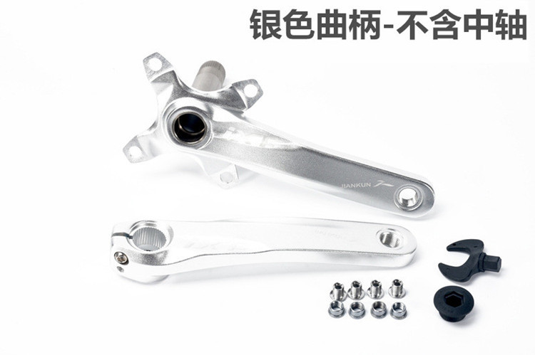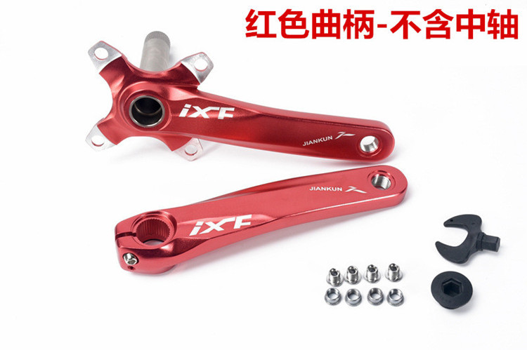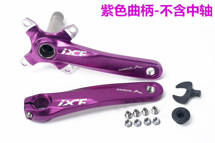 A set of black cranks A set of red cranks A set of gold cranks A set of purple cranks A set of silver cranks A set of 58-73mm threaded central axis positive and negative teeth