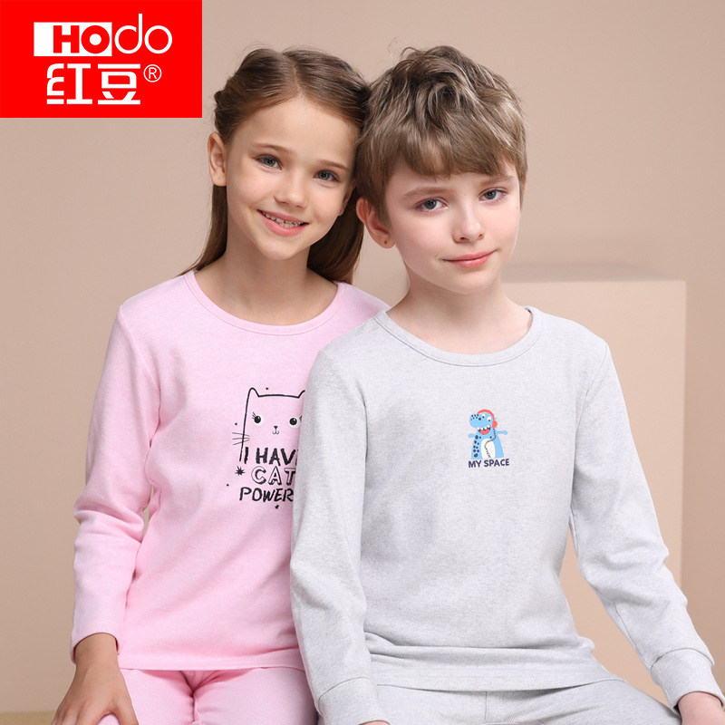 Red bean velvet children's autumn clothes and trousers set cotton padded baby boys and girls cotton sweater thermal underwear set