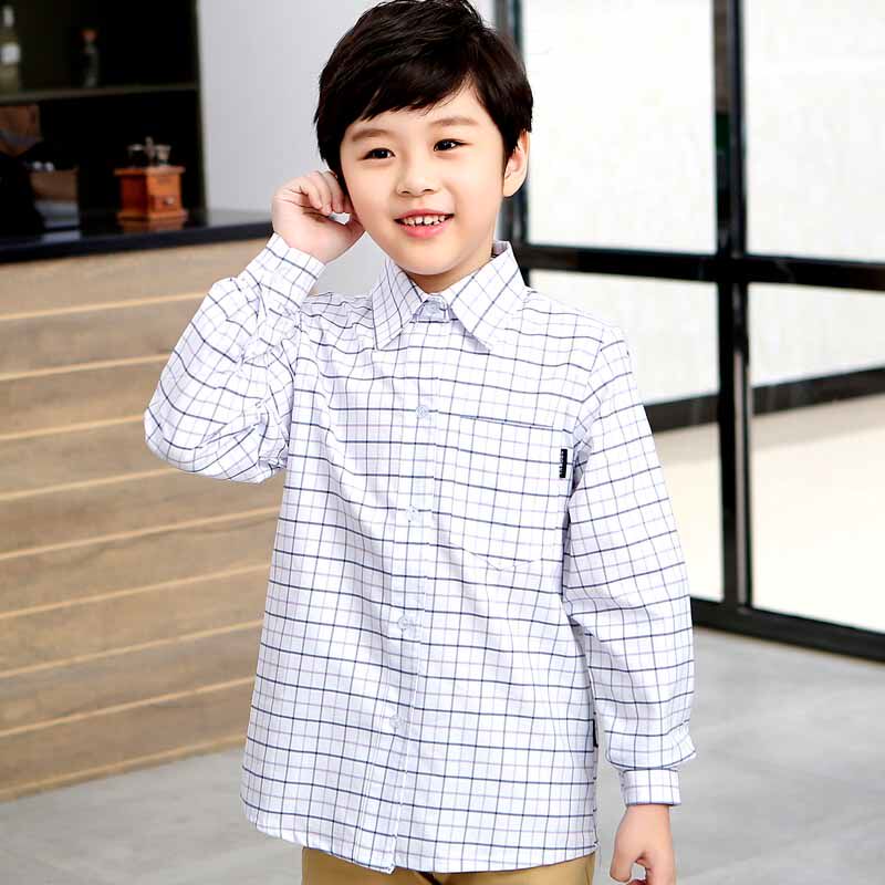 Boys and girls white shirts long-sleeved cotton children's plaid shirts spring and autumn short-sleeved summer school uniforms for primary and secondary school students