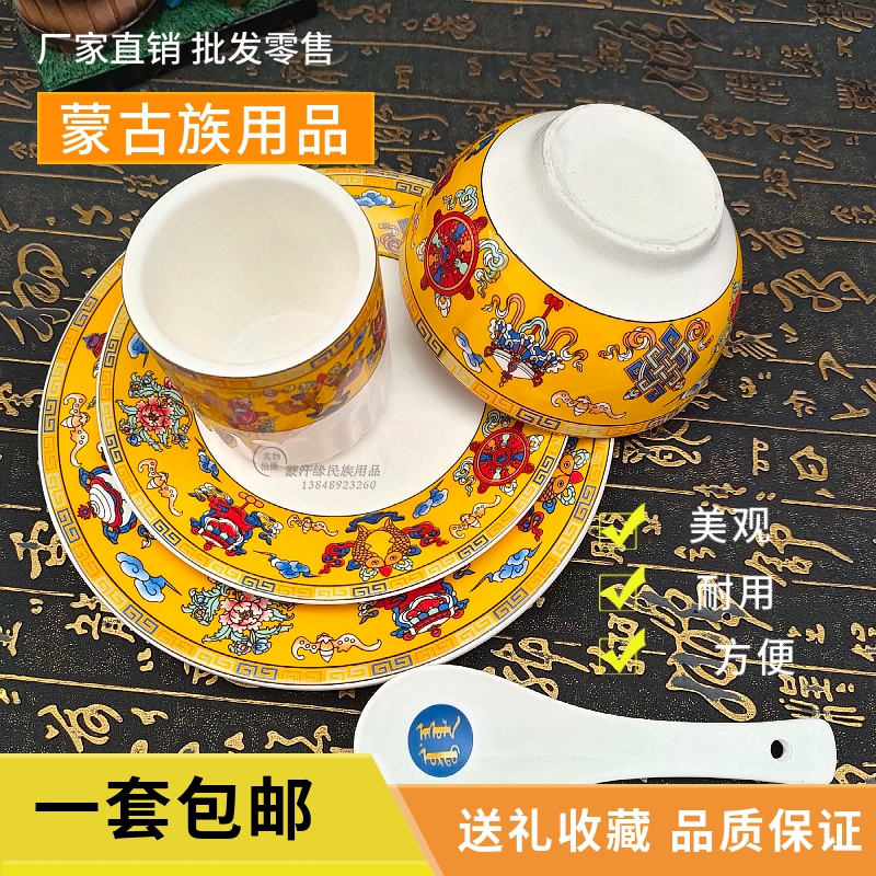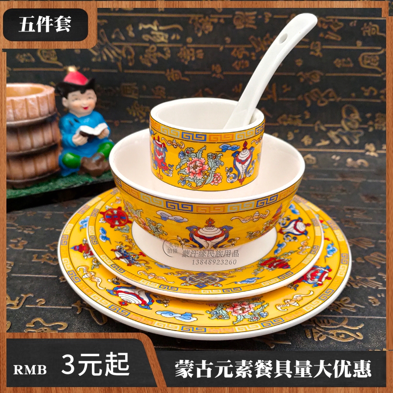 Mongolian bowls, dishes, cups, spoons, Mongolian tableware sets, ethnic characteristics, eight treasures, dishes, bowls, restaurant supplies, large discounts