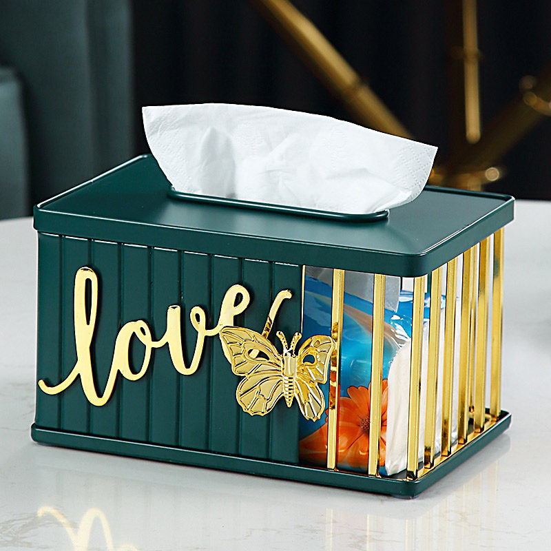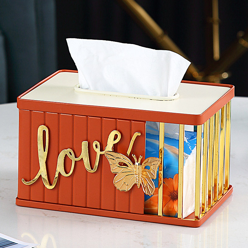 Light luxury creative simple tissue box living room home bedroom iron toilet paper box storage home desktop decoration ornaments