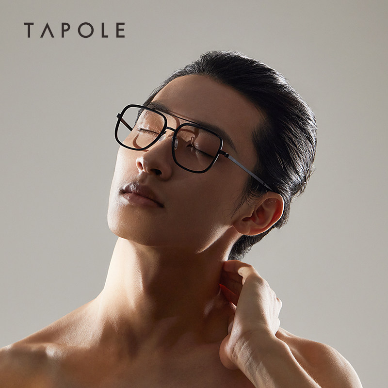 TAPOLE light treasure double-beam large-frame glasses frame trendy men and women unisex frame ultra-light titanium metal myopia glasses T7 - Taobao
