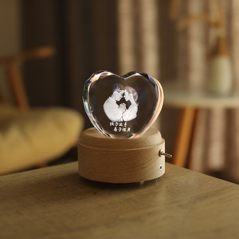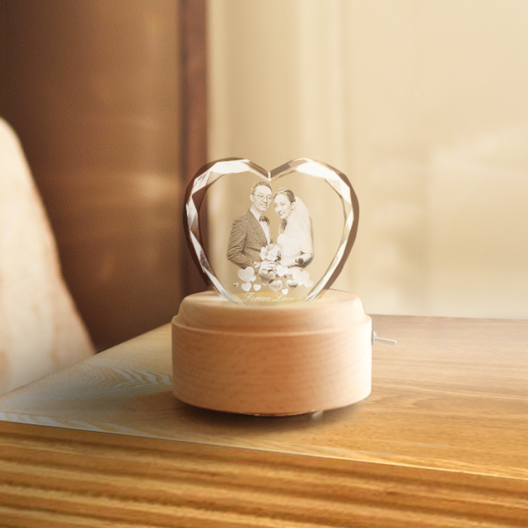Photo custom rotating music box music box Heart-shaped crystal wedding gift to send new best friend friends gift