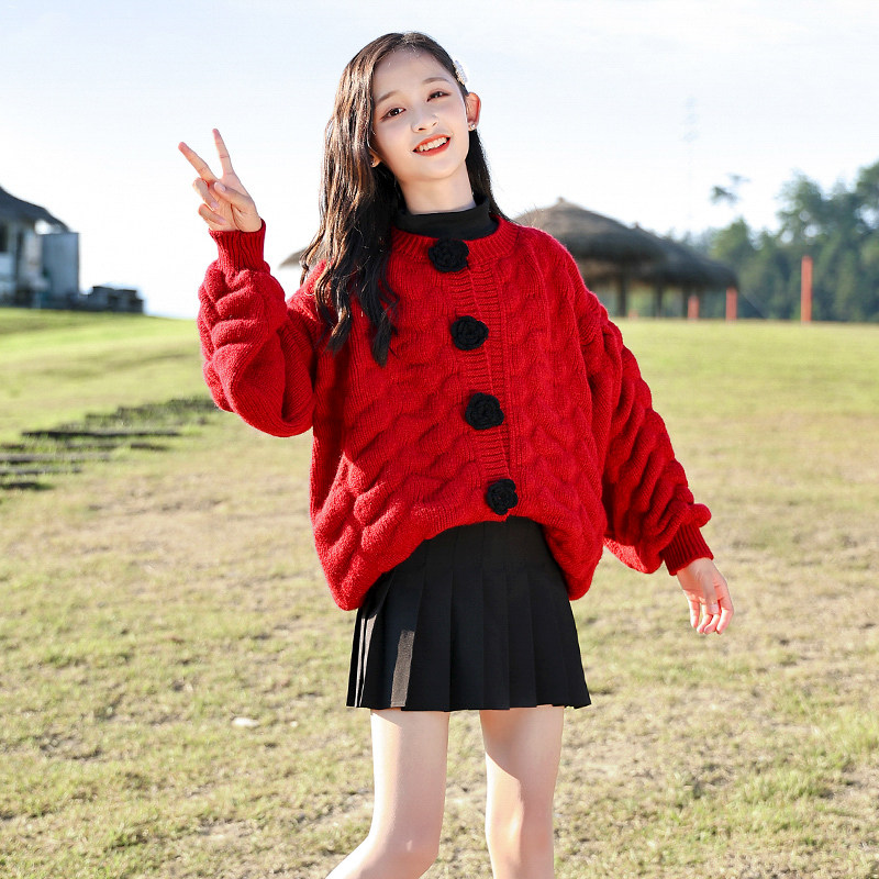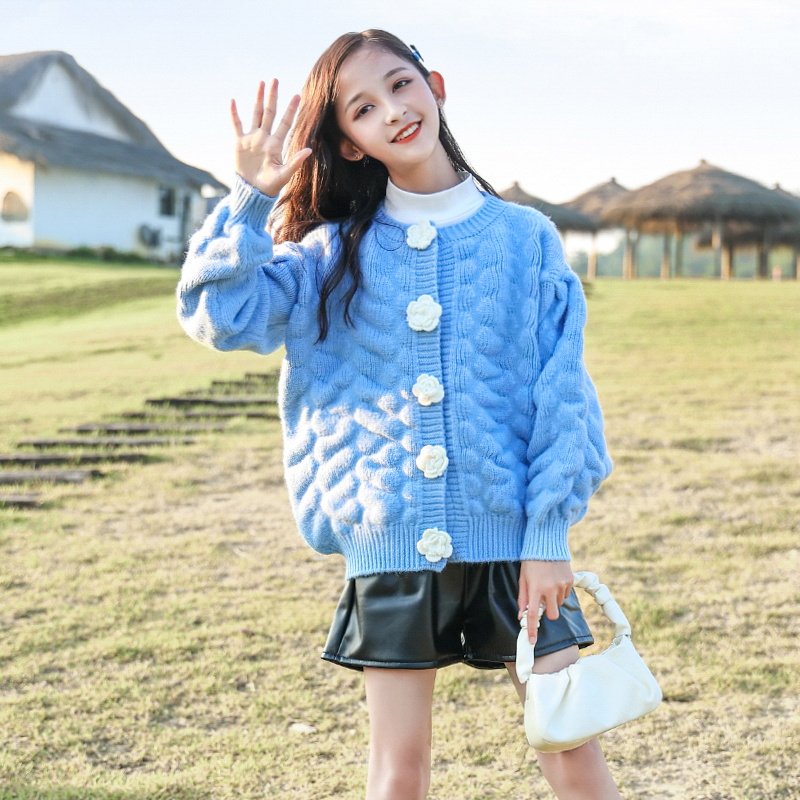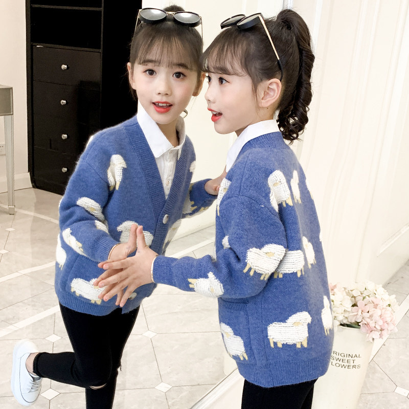 Girls sweater cardigan jacket 2022 new autumn clothes foreign style children's clothing big children spring and autumn girls knitted sweater