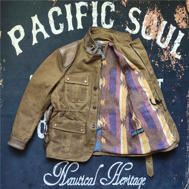 (Prickly) 16OZ Soft Wax Waterproof Craft Canvas Mid-Long Section Leather Retro Hunting Jacket