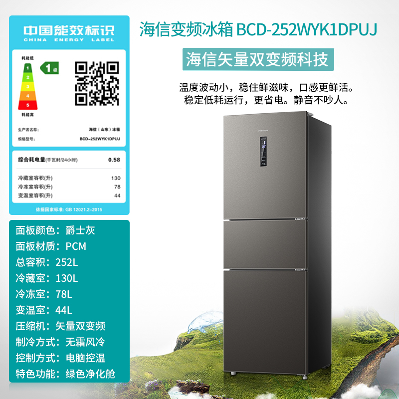 Haixin BCD-252WYK1DPUJ Three-door intelligent air-cooled frost-free primary energy saving domestic electric refrigerator small