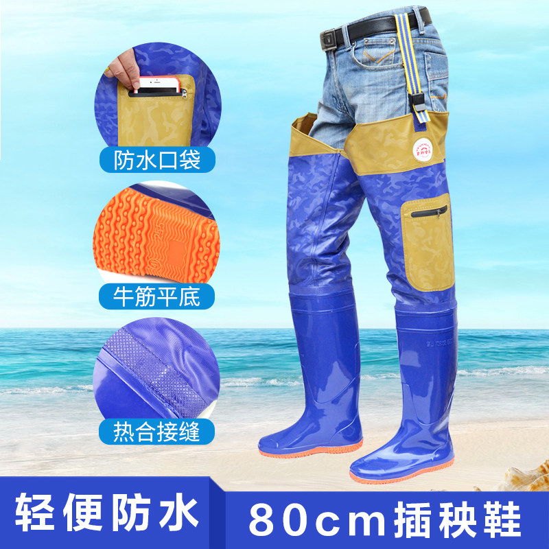 Over-the-knee transplanting boots men's soft-soled long-tube paddy field shoes and socks women's thickened fishing boots integrated farmland farming rain shoes