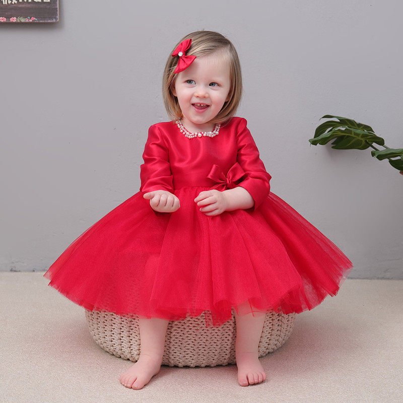 Baby girl one-year-old dress red fluffy gauze skirt baby 100-day catch week birthday party princess dress
