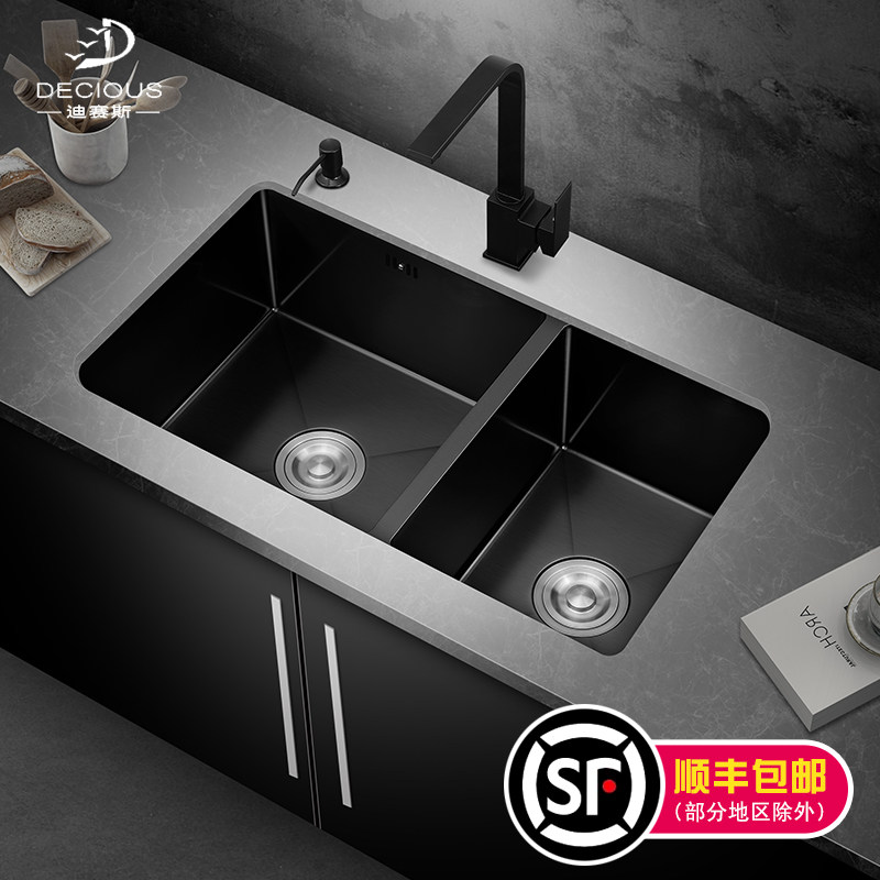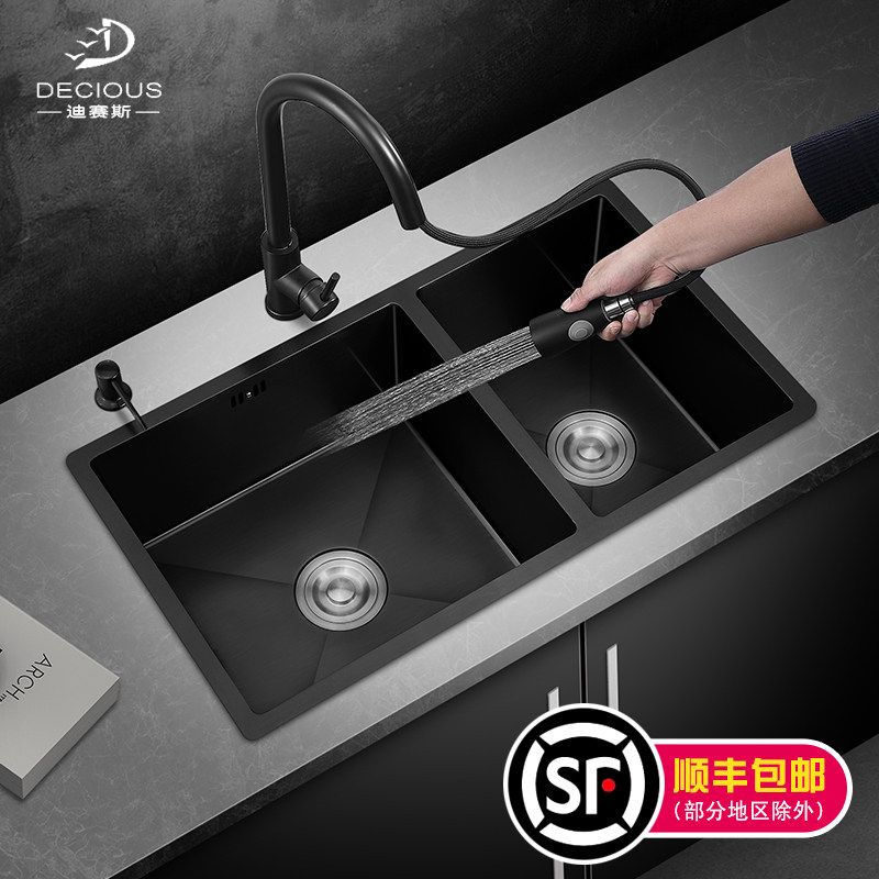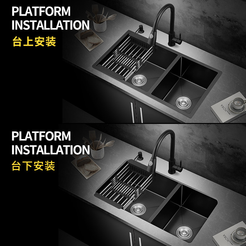 Nano black 304 stainless steel sink Double sink Kitchen Ultra Large hand washed vegetable basin embedded in the lower basin
