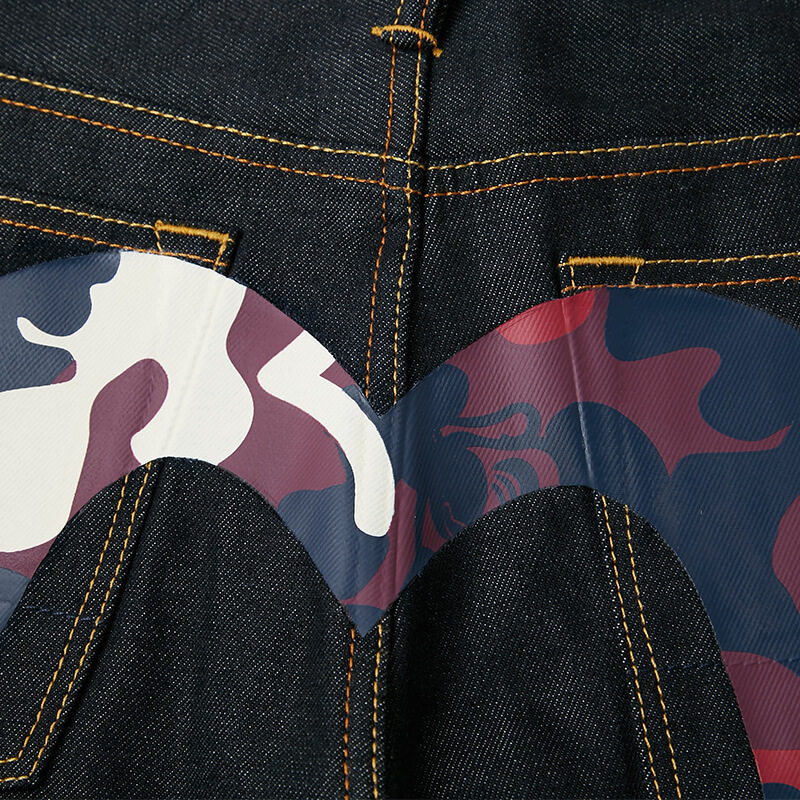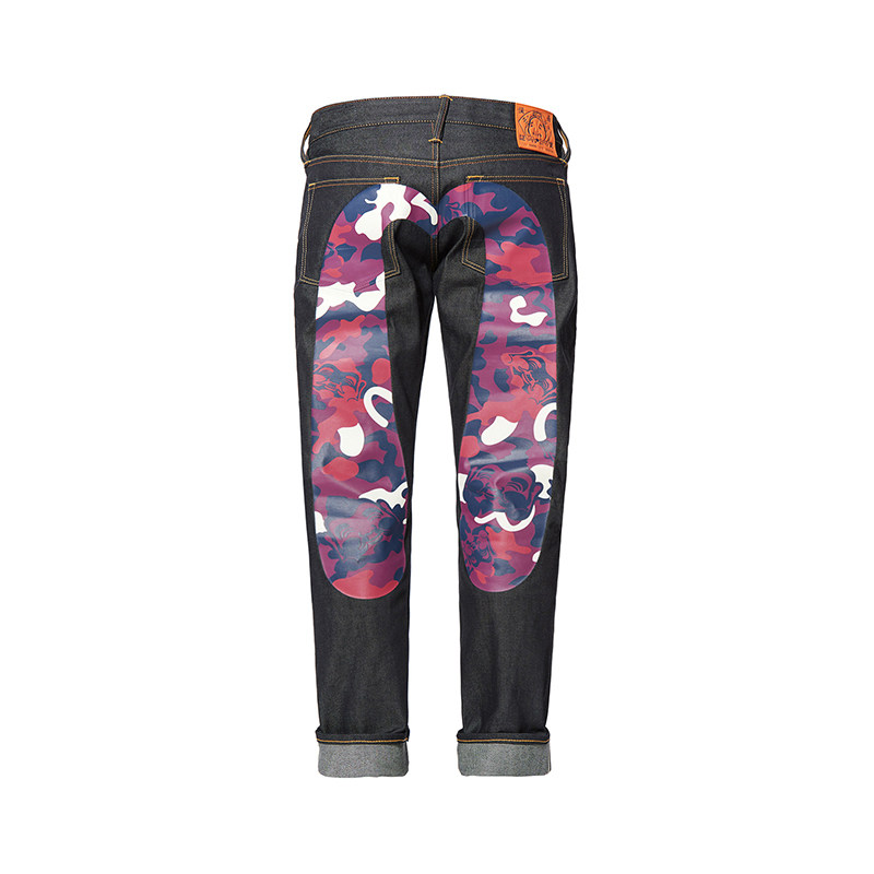 EVISU 19AW camouflak large M printed straight drum jeans male 1EAHTM9JE91208