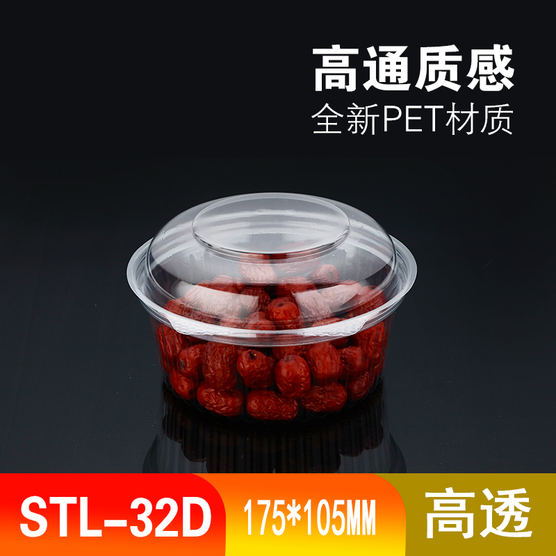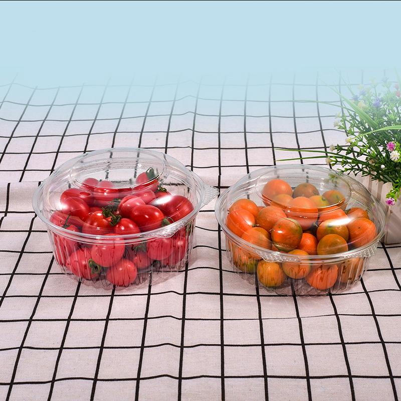 Disposable Salad Bowl Plastic Transparent Salad Cartridge Cover Round Salad Fruit Refreshing Bowl FRUIT CUT PACKAGING BOX