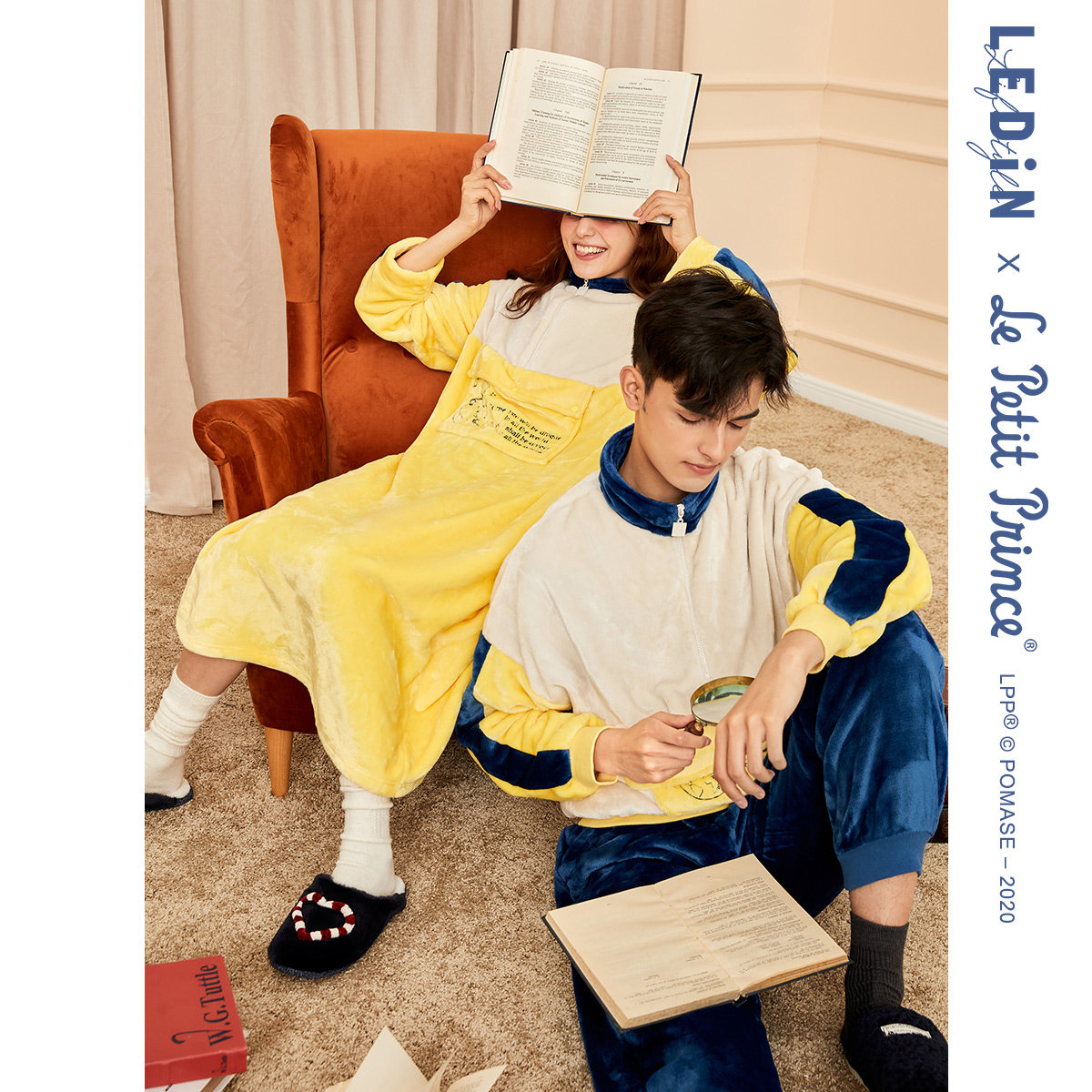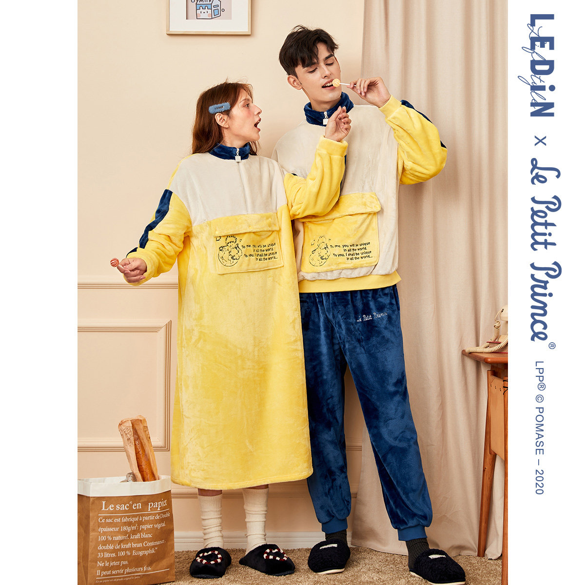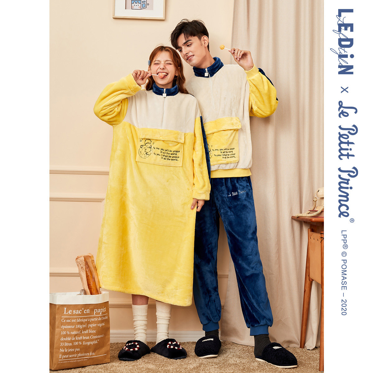 Rakucho Little Prince co-branded couple pajamas women autumn and winter cute long nightgown casual men's loungewear set