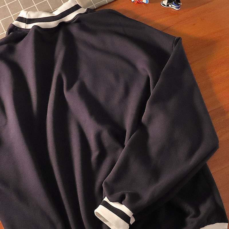 Tide brand color contrast thread high collar pullover sweater Japanese retro preppy wind men's and women's coat couple neutral top tide