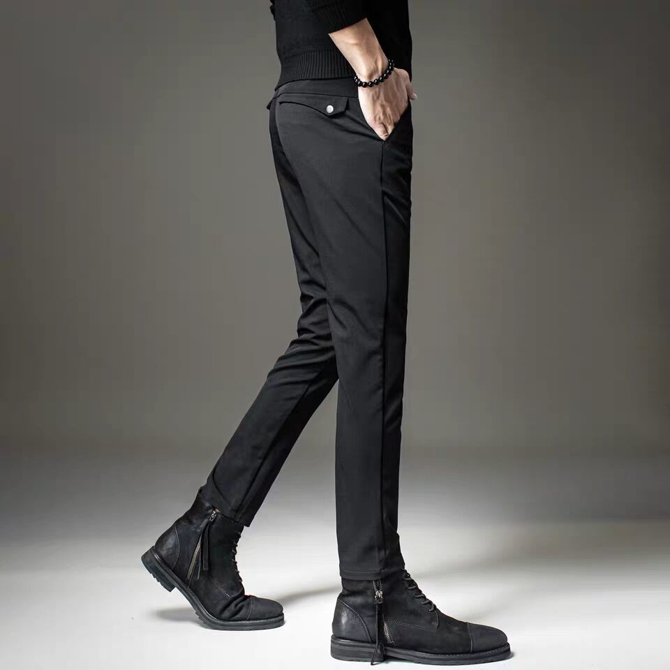 Rich Gui Bird Spring Autumn Thin men's casual pants trendy repair free of ironing Western pants Fashion 100 hitch black elastic long pants