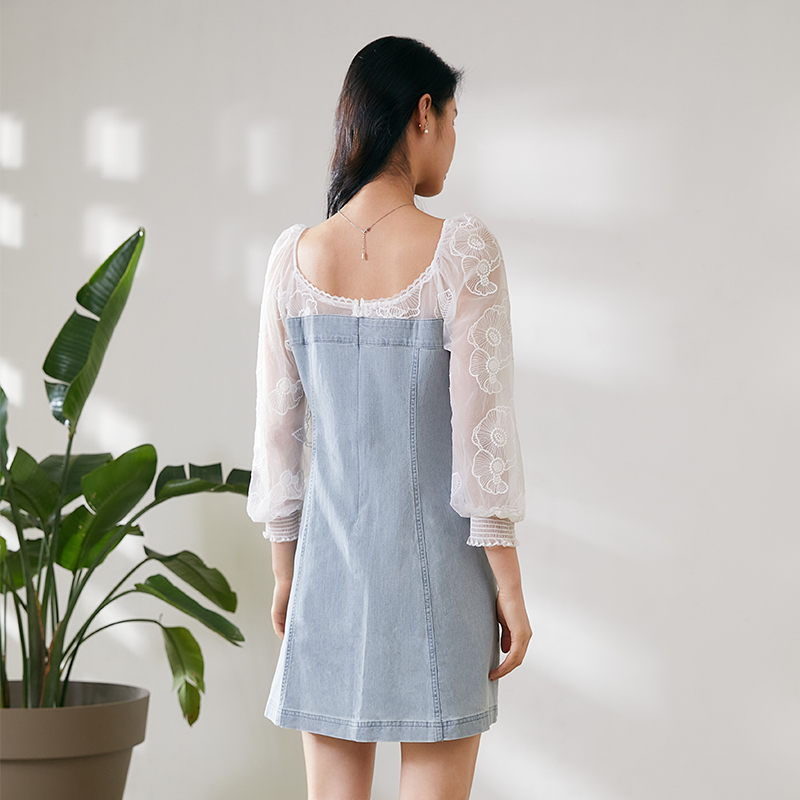 Gloria Song Liya 2020 New Products Bubble Cuff Cowboy Splicing Foreign Dress 108R4J6QA
