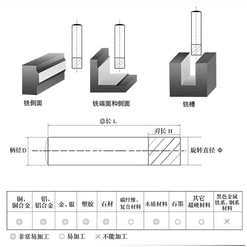 PCD diamond stand milling cutter copper aluminium graphite special diamond milling cutter single-edge double-edged ball knife high light mirror surface chamfer angle