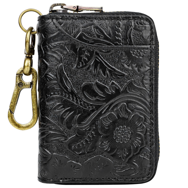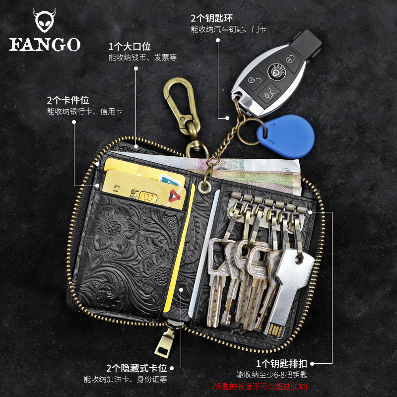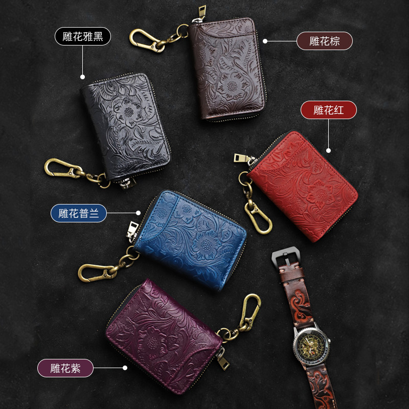 Handmade Genuine Leather Key Bag Men's Large Capacity Theft Protection Brushed Head Layer Cow Leather Waist Hanging Car Key Bag Zero Money Card Bag Tide