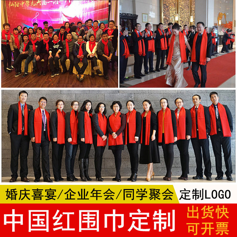 Red scarf annual meeting event party men and women thickened natal year big red logo custom gift Chinese red scarf