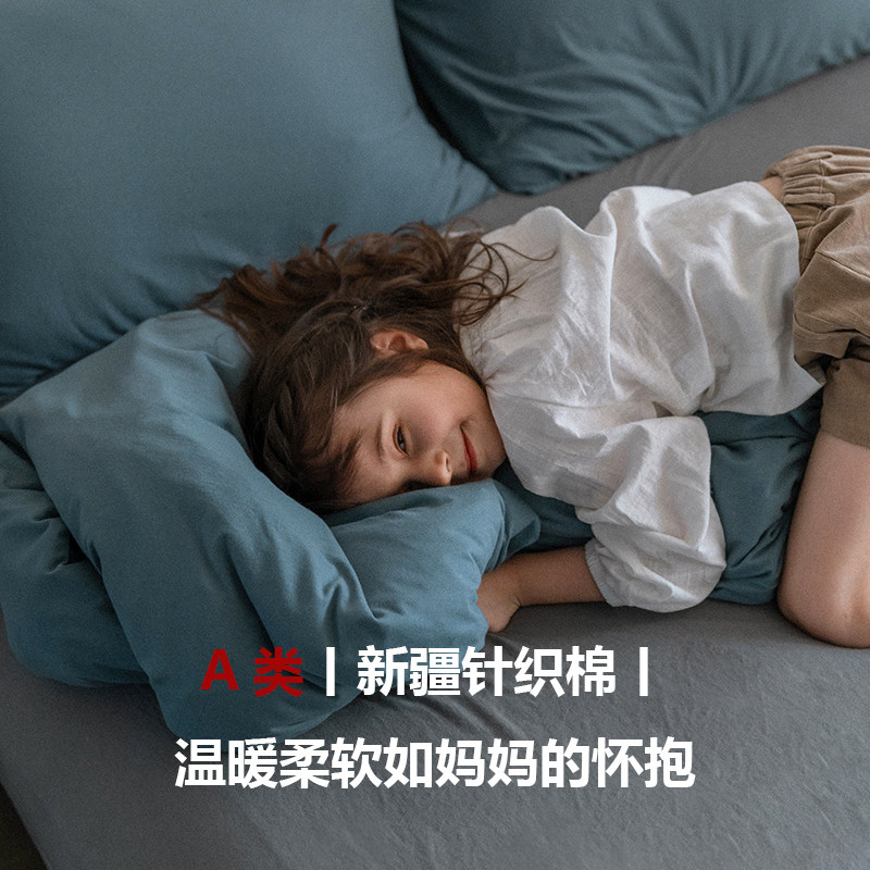 Xinjiang knitted cotton vegetarian color double parquet of four sets of geranium cotton pure color bed products full cotton pure cotton quilt cover sheet bed bamboo hat